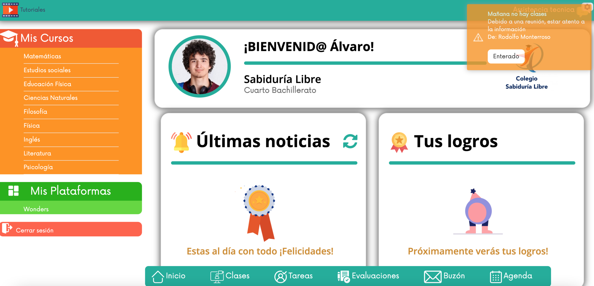 Notificaciones de clases en lĆnea próximas, tareas pendientes, cuestionarios nuevos y mensajes