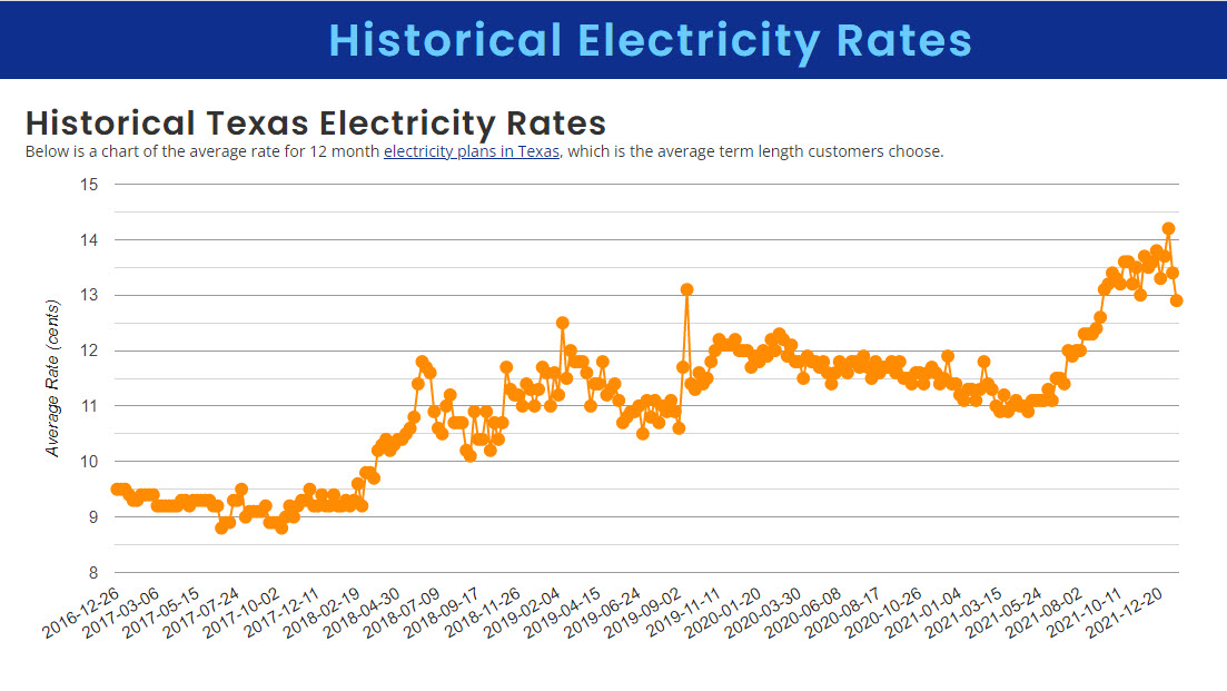 PowertoChoose.org - the official site of Texas' electric choice - is just one more thing that can be done to further exacerbate this problem. If this was to happen anywhere, it would be frustrating and disappointing. But people trust PowertoChoose.org. If a consumer were to stumble upon these 1 cent rates at JohnsTexasElectricitySite.com, they may second guess them. These rates are 7-8 cents cheaper than other rates, so why is that? Texas electricity rates compared. Notice: The rates displayed above reflect the current rate at 11:31.35pm CST, which is also the hour for AEP Central utility. Rates could have changed from this time. You can find the current rate in your area by entering your zip code. Texas: What's the best rate per kWh? Updated November 20,21. The Texas average residential electricity rate of 12.03 C//kWh (14 percent lower than the national average) Will Texas' electricity prices rise? The average residential bill increased slightly by 17%, to $134 per month in February 2021 as compared with $115 for February 2020. The average electricity sale to industrial customers was 24% lower in February 2021 than the previous year. Commercial sales were only 6% higher. March 7, 2021. Fixed-rate plans offer predictable rates. Variable-rate plans can fluctuate from month to month and may be more expensive if market prices rise. Customers on variable-rate plans experienced high bills as a result. This can be avoided by carefully reading the Power to Choose webpage. Both the closing and opening rates are included in this page. Understanding the rates will help you choose which plan to subscribe for.